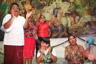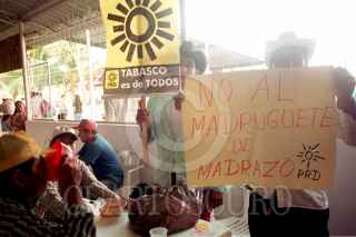 Mujeres simpatizantes de Roberto Madrazo Pintado acudieron con utensilios de cocina para apoyar a los legisladores de su partido y a Enrique Priego Oropeza. FOTO: Victoria Valtierra/CUARTOSCURO.COM