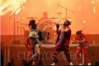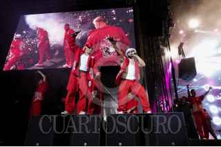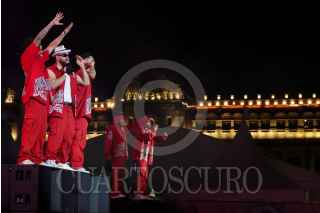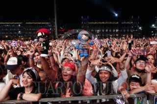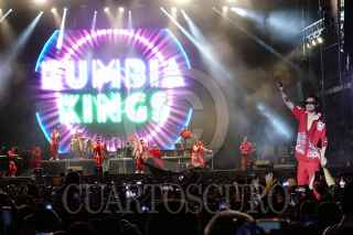 CIUDAD DE MÉXICO, 01ABRIL2023.- El grupo mexicoamericano de cumbia Kumbia Kings se presentaron en la plancha del Zócalo cómo parte del concierto "Cumbión en el Zócalo" poniendo a bailar a cientos de asistentes. Entre sus invitados se encontró el afamado bailarín Medio Metro. FOTO: GALO CAÑAS/CUARTOSCURO.COM