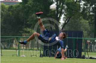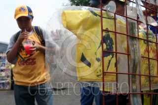 MÉXICO, D.F. 03ABRIL2007.- Un niño aficionado observa un souvenir con la imagen de Cuauhtemoc Blanco, quien anunciara su salida del club América. FOTO: PAOLA HIDALGO/CUARTOSCURO.COM