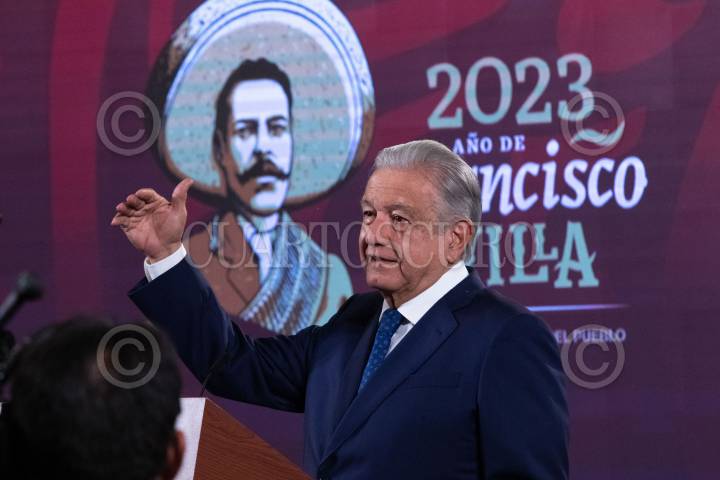 CIUDAD DE MÉXICO, 03ARIL2023.- Andrés Manuel López Obrador, Presidente de México, encabezó la mañanera en Palacio Nacional dónde se entregaron reconocimientos a proveedores de gasolina y de la canasta básica por su compromiso con el consumidor. Además de los avances del Tren Maya en el sureste mexicano. Lo acompañaron Ricardo Sheffield Padilla, Profeco; Manuel Bartlett, CFE; Javier May Rodríguez, Fonatur, Diego Prieto, INAH, y Manuel Muñoz Calo, Azvindi. FOTO: MOISÉS PABLO/CUARTOSCURI.COM