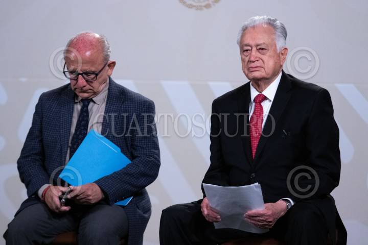 CIUDAD DE MÉXICO, 03ARIL2023.- Andrés Manuel López Obrador, Presidente de México, encabezó la mañanera en Palacio Nacional dónde se entregaron reconocimientos a proveedores de gasolina y de la canasta básica por su compromiso con el consumidor. Además de los avances del Tren Maya en el sureste mexicano. Lo acompañaron Ricardo Sheffield Padilla, Profeco; Manuel Bartlett, CFE; Javier May Rodríguez, Fonatur, Diego Prieto, INAH, y Manuel Muñoz Calo, Azvindi. FOTO: MOISÉS PABLO/CUARTOSCURI.COM