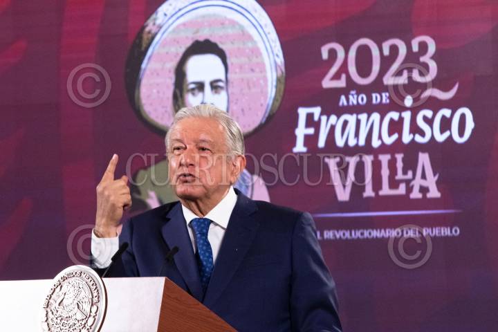 CIUDAD DE MÉXICO, 03ARIL2023.- Andrés Manuel López Obrador, Presidente de México, encabezó la mañanera en Palacio Nacional dónde se entregaron reconocimientos a proveedores de gasolina y de la canasta básica por su compromiso con el consumidor. Además de los avances del Tren Maya en el sureste mexicano. Lo acompañaron Ricardo Sheffield Padilla, Profeco; Manuel Bartlett, CFE; Javier May Rodríguez, Fonatur, Diego Prieto, INAH, y Manuel Muñoz Calo, Azvindi. FOTO: MOISÉS PABLO/CUARTOSCURI.COM