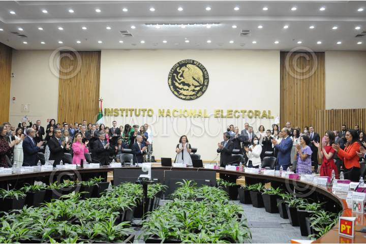 CIUDAD DE MÉXICO, 03ABRIL2023.- Los nuevos consejeros electorales tomaron protesta esta tarde en el Instituto Nacional Electoral, Guadalupe Taddei, nueva consejera presidenta tomó el cargo qué días antes dejó Lorenzo Córdova y anunció Rita Bell López, Arturo Castillo y Jorge Montaño como nuevos integrantes del órgano electoral apartir de hoy y hasta el año 2032. FOTO: DANIEL AUGUSTO /CUARTOSCURO.COM