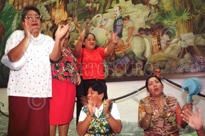 Mujeres simpatizantes de Roberto Madrazo Pintado acudieron con utensilios de cocina para apoyar a los legisladores de su partido y a Enrique Priego Oropeza. FOTO: Victoria Valtierra/CUARTOSCURO.COM