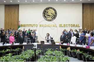 CIUDAD DE MÉXICO, 03ABRIL2023.- Los nuevos consejeros electorales tomaron protesta esta tarde en el Instituto Nacional Electoral, Guadalupe Taddei, nueva consejera presidenta tomó el cargo qué días antes dejó Lorenzo Córdova y anunció Rita Bell López, Arturo Castillo y Jorge Montaño como nuevos integrantes del órgano electoral apartir de hoy y hasta el año 2032. FOTO: DANIEL AUGUSTO /CUARTOSCURO.COM