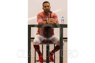 CIUDAD DE MÉXICO. 03ABRIL2023.- El manager de los diablos rojos del México, Juan Gabriel Castro hablo ante medios en el estadio de béisbol, Alfredo Harp Helu. FOTO: VICTORIA VALTIERRA/CUARTOSCURO.COM