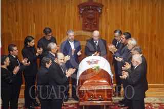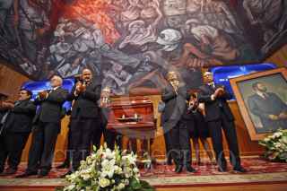 GUADALAJARA, JALISCO, 04ABRIL2023.- Esta mañana en las instalaciones del Paraninfo Enrique Díaz de León de la Universidad de Guadalajara (UdeG), se llevo cabo el Homenaje Póstumo de cuerpo presente del Ex Rector General y Presidente de la Feria Internacional del Libro de Guadalajara (FIL), Raúl Padilla López, quien el pasado domingo fue encontrado sin vida en su hogar. FOTO: FERNANDO CARRANZA GARCIA / CUARTOSCURO.COM