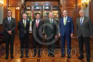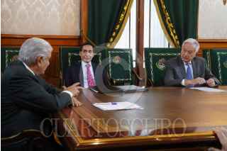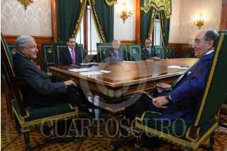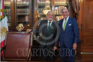 CIUDAD DE MÉXICO, 04ABRIL2023.- Andrés Manuel López Obrador, presidente de México, en compañía de Rogelio Ramírez de la O., secretario de Haciendo y Crédito Público; Manuel Bartlett, director general de la Comisión Federal de Electricidad (CFE), así como de Ignacio Sánchez Galán, presidente de Iberdrola, y José Enrique Alva, presidente en México de Iberdrola, sostuvieron una reunión en dónde se dió a conocer que el gobierno federal adquirió 13 plantas de generación de energía que estarán a cargo de la CFE. FOTO: PRESIDENCIA/CUARTOSCURO.COM