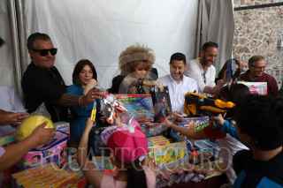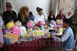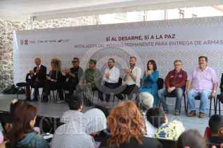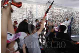 CIUDAD DE MÉXICO, 04ABRIL2023.- Parte del elenco de la obra “Busco al hombre de mi vida, marido ya tuve”, acudió a la apertura del módulo “Si al desarme, si a La Paz” en la Iglesia de San Hipólito. FOTO: EDGAR NEGRETE LIRA/CUARTOSCURO.COM
