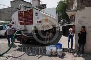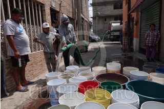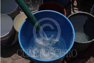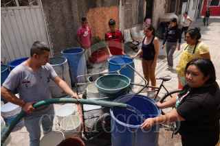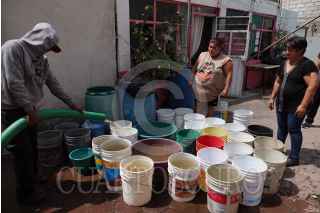CIUDAD DE MÉXICO, 04ABRIL2023.- Familias de diferentes predios de la alcaldía Iztapalapa llenan botes y tambos de agua, que son suministrados por pipas de agua que acuden una vez por semana. Debido a los niveles bajos del Sistema Cutzamala, la escasez del vital líquido acrecentó por la temporada de estiaje en 13 colonias que llevan sufriendo el desabasto de agua desde hace varios años y dependiendo de la demanda son de 250 a 350 pipas diarias las que suministran a los habitantes de esta zona. FOTO: GRACIELA LÓPEZ /CUARTOSCURO.COM