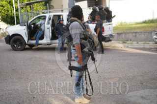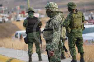 MORELIA, MICHOACÁN, 04ABRIL2023. Dos agentes de la Fiscalía General de Michoacán (FGE) fueron asesinados en un ataque armado en el Fraccionamiento Misión del Valle, al norte de Morelia. La FGE confirmó el deceso de dos policías de investigación que se encontraban en la zona, donde ya se detuvieron personas relacionadas. Personal de policía en labores de investigación ha sido agredido con disparos de arma de fuego; hasta el momento se reportan dos agentes fallecidos. En los momentos inmediatos posteriores a la agresión registrada en Misión del Valle y como resultado de la persecución real y material, fueron detenidos presuntos delincuentes y se aseguraron armas de fuego de diversos tipos y calibres", indicó la Fiscalía vía Twitter. Reportes locales indicaron que los perpetradores viajaban en dos camionetas de doble cabina cuando dispararon contra los oficiales que se encontraban en la tercera sección del Fraccionamiento. En ese momento se inició la persecución de los responsables, que fue seguida de una balacera que duró más de 30 minutos. Una vez hecho el reporte, se inició un operativo en el que participan Ejército Mexicano, Guardia Nacional y Civil, y la Fiscalía General del Estado para dar con los responsables. Por aire, el operativo fue reforzado por un helicóptero de la Secretaría de Seguridad Pública (SSP) y un Black Hawk artillado de la Guardia Nacional. FOTO: JUAN JOSÉ ESTRADA SERAFÍN /CUARTOSCURO.COM