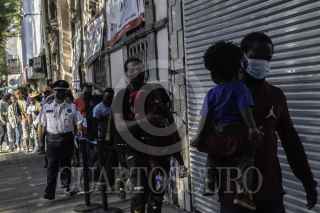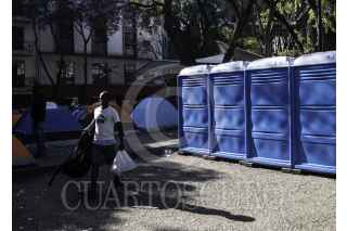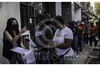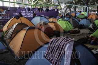 CIUDAD DE MÉXICO, 05ABRIL2023.- Decenas de migrantes en su mayoría haitianos diariamente realizan filas para tener cita en la Comisión Mexicana de Ayuda a Refugiados (CANAR) en la Colonia Juárez. A unas cuadras de la Comisión también mantienen un campamento que aunque se les haya dado asistencia con unos baños portátiles, el olor por la lluvia, basura es fuerte. En el lugar pernoctan hasta 100 personas diariamente. FOTO: ANDREA MURCIA /CUARTOSCURO.COM