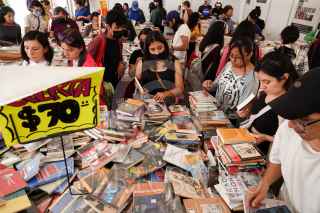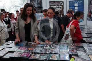 CIUDAD DE MÉXICO, 05ABRIL2023.- Claudia Sheinbaum, jefa de gobierno de la Ciudad de México; Paco Ignacio Taibo II, director del Fondo de Cultura Económica (FCE); Paola Sainz, fundadora de la Brigada para Leer en Libertad, y Claudia Curiel, secretaria de Cultura de la Ciudad de México, encabezaron la inauguración de la edición 15 del Gran Remate de Libros y Películas en la Ciudad de México, en el Monumento a la Revolución. FOTO: GALO CAÑAS/CUARTOSCURO.COM