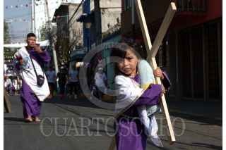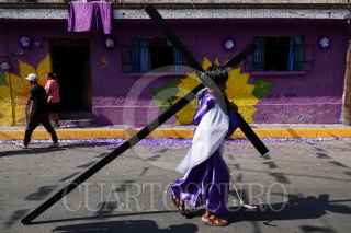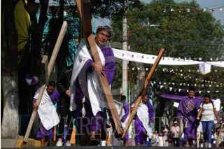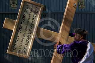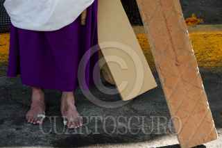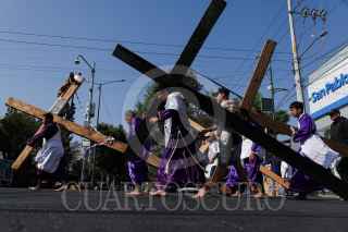 CIUDAD DE MÉXICO, 07ABRIL2023.- Miles de nazarenos salieron desde las primeras horas del día para recorrer los ocho barrios de la alcaldía Iztapalapa. Según la tradición la cruz representa las mandas y los pecados a expiar, así como simular el recorrido que Jesús de Nazaret hizo el viernes santo. FOTO: GALO CAÑAS/CUARTOSCURO.COM