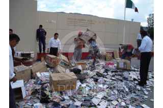 CHILPANCINGO, GUERRERO, 03ABRIL2007.- Se llevó a cabo la destruccion de material apocrifo afuera de las instalaciones de la delegación estatal de la PGR, después de que fuera decomisado en diversos operativos realizados por la AFI. FOTO: OSCAR ALVARADO/CUARTOSCURO.COM
