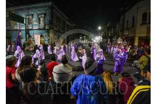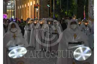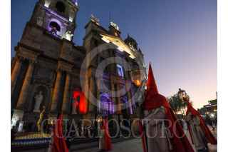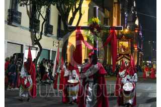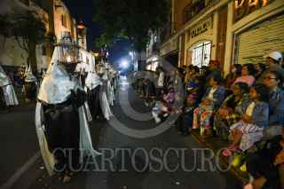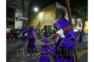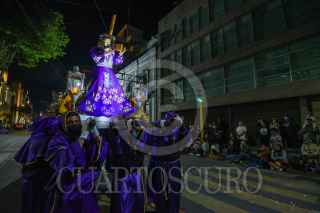 TOLUCA, ESTADO DE MÉXICO, 07ABRIL2023.- Al caer la tarde de este Viernes Santo dio inicio la Procesión del Silencio en Toluca en su edición número 45 las cofradías participantes desfilaron por las calles de Toluca cargando las imágenes que representan las 14 estaciones del Viacrucis que pudieron disfrutar los asistentes a este recorrido. FITO: CRISANTA ESPINOSA AGUILAR /CUARTOSCURO.COM