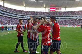 ZAPOPAN, JALISCO.08ABRIL2023.- Esta tarde en el Estadio Akron se lleva a cabo el juego entre las Chivas de Guadalajara frente al conjunto de los Rayos del Necaxa, esto en partido correspondiente a la Jornada 14 del Torneo Clausura Temporada 2022-2023 de la Liga MX, el marcador al final es de 1-0, a favor de las Chivas. FOTO: FERNANDO CARRANZA GARCIA / CUARTOSCURO.COM
