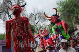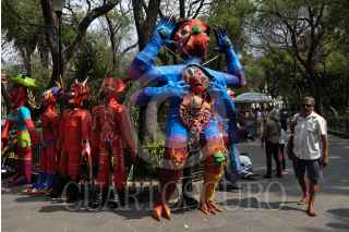 CIUDAD DE MÉXICO, 08ABRIL2023.- Cartoneros de la Ciudad de México realizaron el tradicional Festival de la Cartonería y Quema de Judas, con motivo de la Semana Santa, en las inmediaciones de la Alameda de Sants María La Ribera. Posteriormente, en procesión se dirigieron a la iglesia de San Hipólito para la Qumeda de dos Judas correspondiente al viernes santo. FOTO: GALO CAÑAS/CUARTOSCURO.COM