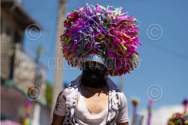 JIMÉNEZ DEL TEÚL, ZACATECAS, 09ABRIL2023.- A trescientos kilómetros de la capital Zacatecana, en este municipio se realiza cada año, desde su fundación en 1591; durante la Semana Santa, la enigmática y colorida “Judea”, en la este año, alrededor de entre 60 y 80 participantes representa de manera teatral-ancestral la pasión de Cristo.Con pocos cambios desde su origen, uno de los pasajes más significativos del catolicismo, se entrelaza con las tradiciones de los pueblos originarios de la región de lo que hoy es Zacatecas, Durango, Nayarit y Jalisco; muestra la interpretación que estos pueblos tuvieron del acto litúrgico al momento de la conquista espiritual. El Viernes Santo es el día más representativo. Los participantes, desde temprana hora inicia con la persecución delos “barrabases”, personajes que representan a Dimas, Gestas y Barrabás, los ladrones que fueron crucificados junto a Jesús. Durante todo el tiempo la procesión es acompañada por los sonidos característico de una tambora y un cuerno. Todo el pueblo se reúne para caminar detrás de los participantes una vez más desde la capilla de la Guadalupana hasta el templo principal; en el trayecto se van deteniendo en los altares colocados afuera de casas para rememorar la Pasión de Cristo. Se presentan personajes relacionados con el sufrimiento de Jesucristo, como las mujeres piadosas, las verónicas, los jueces, las muertes o los centuriones, cada uno con un atuendo y características distintivas, que van recreando, en silencio, solo con la compañía del tambor y el sonido del cuerno. La celebración termina con la crucifixión de Jesús, una imagen que es cargada por pobladores y su sepultura. Esta tradición de uno de los pueblos más alejados de la capital es promovida y organizada por un comité organizativo de la comunidad, pero el profe Ponciano Guevara, quien además es cronista del municipio, mantiene el impulso para seguir manteniendo esta original e histórica tradición. FOTO: ADOLFO VLADIMIR /CUARTOSCURO.COM