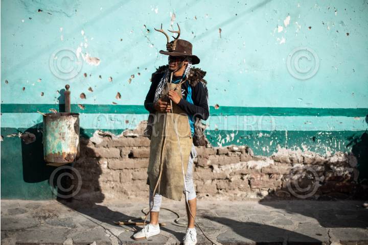 JIMÉNEZ DEL TEÚL, ZACATECAS, 09ABRIL2023.- A trescientos kilómetros de la capital Zacatecana, en este municipio se realiza cada año, desde su fundación en 1591; durante la Semana Santa, la enigmática y colorida “Judea”, en la este año, alrededor de entre 60 y 80 participantes representa de manera teatral-ancestral la pasión de Cristo.Con pocos cambios desde su origen, uno de los pasajes más significativos del catolicismo, se entrelaza con las tradiciones de los pueblos originarios de la región de lo que hoy es Zacatecas, Durango, Nayarit y Jalisco; muestra la interpretación que estos pueblos tuvieron del acto litúrgico al momento de la conquista espiritual. El Viernes Santo es el día más representativo. Los participantes, desde temprana hora inicia con la persecución delos “barrabases”, personajes que representan a Dimas, Gestas y Barrabás, los ladrones que fueron crucificados junto a Jesús. Durante todo el tiempo la procesión es acompañada por los sonidos característico de una tambora y un cuerno. Todo el pueblo se reúne para caminar detrás de los participantes una vez más desde la capilla de la Guadalupana hasta el templo principal; en el trayecto se van deteniendo en los altares colocados afuera de casas para rememorar la Pasión de Cristo. Se presentan personajes relacionados con el sufrimiento de Jesucristo, como las mujeres piadosas, las verónicas, los jueces, las muertes o los centuriones, cada uno con un atuendo y características distintivas, que van recreando, en silencio, solo con la compañía del tambor y el sonido del cuerno. La celebración termina con la crucifixión de Jesús, una imagen que es cargada por pobladores y su sepultura. Esta tradición de uno de los pueblos más alejados de la capital es promovida y organizada por un comité organizativo de la comunidad, pero el profe Ponciano Guevara, quien además es cronista del municipio, mantiene el impulso para seguir manteniendo esta original e histórica tradición. FOTO: ADOLFO VLADIMIR /CUARTOSCURO.COM