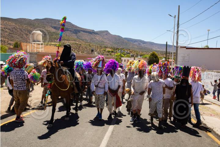 JIMÉNEZ DEL TEÚL, ZACATECAS, 09ABRIL2023.- A trescientos kilómetros de la capital Zacatecana, en este municipio se realiza cada año, desde su fundación en 1591; durante la Semana Santa, la enigmática y colorida “Judea”, en la este año, alrededor de entre 60 y 80 participantes representa de manera teatral-ancestral la pasión de Cristo.Con pocos cambios desde su origen, uno de los pasajes más significativos del catolicismo, se entrelaza con las tradiciones de los pueblos originarios de la región de lo que hoy es Zacatecas, Durango, Nayarit y Jalisco; muestra la interpretación que estos pueblos tuvieron del acto litúrgico al momento de la conquista espiritual. El Viernes Santo es el día más representativo. Los participantes, desde temprana hora inicia con la persecución delos “barrabases”, personajes que representan a Dimas, Gestas y Barrabás, los ladrones que fueron crucificados junto a Jesús. Durante todo el tiempo la procesión es acompañada por los sonidos característico de una tambora y un cuerno. Todo el pueblo se reúne para caminar detrás de los participantes una vez más desde la capilla de la Guadalupana hasta el templo principal; en el trayecto se van deteniendo en los altares colocados afuera de casas para rememorar la Pasión de Cristo. Se presentan personajes relacionados con el sufrimiento de Jesucristo, como las mujeres piadosas, las verónicas, los jueces, las muertes o los centuriones, cada uno con un atuendo y características distintivas, que van recreando, en silencio, solo con la compañía del tambor y el sonido del cuerno. La celebración termina con la crucifixión de Jesús, una imagen que es cargada por pobladores y su sepultura. Esta tradición de uno de los pueblos más alejados de la capital es promovida y organizada por un comité organizativo de la comunidad, pero el profe Ponciano Guevara, quien además es cronista del municipio, mantiene el impulso para seguir manteniendo esta original e histórica tradición. FOTO: ADOLFO VLADIMIR /CUARTOSCURO.COM