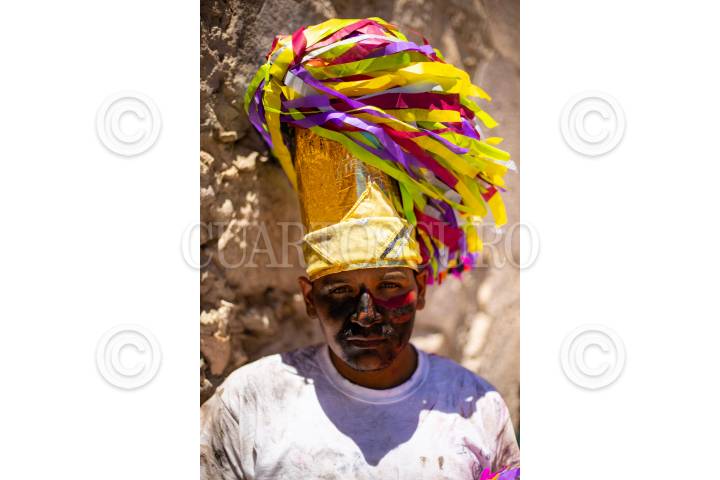 JIMÉNEZ DEL TEÚL, ZACATECAS, 09ABRIL2023.- A trescientos kilómetros de la capital Zacatecana, en este municipio se realiza cada año, desde su fundación en 1591; durante la Semana Santa, la enigmática y colorida “Judea”, en la este año, alrededor de entre 60 y 80 participantes representa de manera teatral-ancestral la pasión de Cristo.Con pocos cambios desde su origen, uno de los pasajes más significativos del catolicismo, se entrelaza con las tradiciones de los pueblos originarios de la región de lo que hoy es Zacatecas, Durango, Nayarit y Jalisco; muestra la interpretación que estos pueblos tuvieron del acto litúrgico al momento de la conquista espiritual. El Viernes Santo es el día más representativo. Los participantes, desde temprana hora inicia con la persecución delos “barrabases”, personajes que representan a Dimas, Gestas y Barrabás, los ladrones que fueron crucificados junto a Jesús. Durante todo el tiempo la procesión es acompañada por los sonidos característico de una tambora y un cuerno. Todo el pueblo se reúne para caminar detrás de los participantes una vez más desde la capilla de la Guadalupana hasta el templo principal; en el trayecto se van deteniendo en los altares colocados afuera de casas para rememorar la Pasión de Cristo. Se presentan personajes relacionados con el sufrimiento de Jesucristo, como las mujeres piadosas, las verónicas, los jueces, las muertes o los centuriones, cada uno con un atuendo y características distintivas, que van recreando, en silencio, solo con la compañía del tambor y el sonido del cuerno. La celebración termina con la crucifixión de Jesús, una imagen que es cargada por pobladores y su sepultura. Esta tradición de uno de los pueblos más alejados de la capital es promovida y organizada por un comité organizativo de la comunidad, pero el profe Ponciano Guevara, quien además es cronista del municipio, mantiene el impulso para seguir manteniendo esta original e histórica tradición. FOTO: ADOLFO VLADIMIR /CUARTOSCURO.COM
