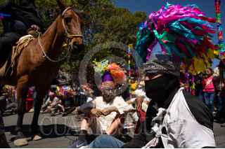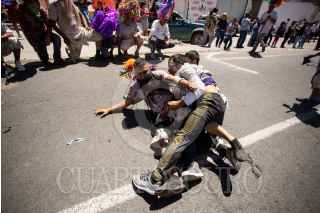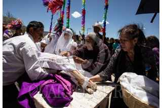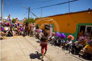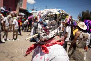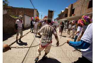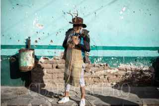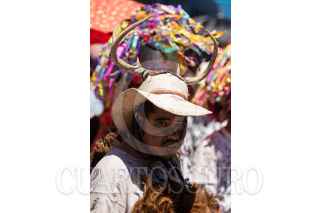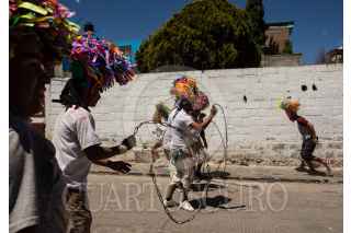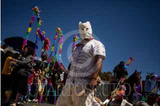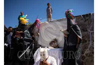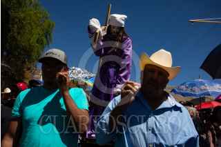 JIMÉNEZ DEL TEÚL, ZACATECAS, 09ABRIL2023.- A trescientos kilómetros de la capital Zacatecana, en este municipio se realiza cada año, desde su fundación en 1591; durante la Semana Santa, la enigmática y colorida “Judea”, en la este año, alrededor de entre 60 y 80 participantes representa de manera teatral-ancestral la pasión de Cristo.Con pocos cambios desde su origen, uno de los pasajes más significativos del catolicismo, se entrelaza con las tradiciones de los pueblos originarios de la región de lo que hoy es Zacatecas, Durango, Nayarit y Jalisco; muestra la interpretación que estos pueblos tuvieron del acto litúrgico al momento de la conquista espiritual. El Viernes Santo es el día más representativo. Los participantes, desde temprana hora inicia con la persecución delos “barrabases”, personajes que representan a Dimas, Gestas y Barrabás, los ladrones que fueron crucificados junto a Jesús. Durante todo el tiempo la procesión es acompañada por los sonidos característico de una tambora y un cuerno. Todo el pueblo se reúne para caminar detrás de los participantes una vez más desde la capilla de la Guadalupana hasta el templo principal; en el trayecto se van deteniendo en los altares colocados afuera de casas para rememorar la Pasión de Cristo. Se presentan personajes relacionados con el sufrimiento de Jesucristo, como las mujeres piadosas, las verónicas, los jueces, las muertes o los centuriones, cada uno con un atuendo y características distintivas, que van recreando, en silencio, solo con la compañía del tambor y el sonido del cuerno. La celebración termina con la crucifixión de Jesús, una imagen que es cargada por pobladores y su sepultura. Esta tradición de uno de los pueblos más alejados de la capital es promovida y organizada por un comité organizativo de la comunidad, pero el profe Ponciano Guevara, quien además es cronista del municipio, mantiene el impulso para seguir manteniendo esta original e histórica tradición. FOTO: ADOLFO VLADIMIR /CUARTOSCURO.COM
