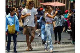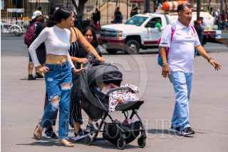CIUDAD DE MÉXICO. 09ABRIL2023.- Turistas nacionales y extranjeros, visitan el Zócalo Capitalino, este domingo cálido y que luce semi vacío. FOTO: VICTORIA VALTIERRA/CUARTOSCURO.COM