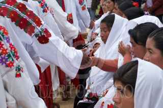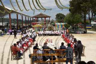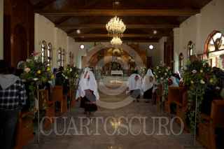 LÁZARO CÁRDENAS CHILIL, CHIAPAS, 09ABRIL2023.- Pobladores de la región acudieron a la Iglesia recién restaurada desde el temblor del pasado 2018,. Durante la celebración del domingo de resurrección de Jesucristo, cientos de participantes se dieron cita en el rodeo, construido artesanalmente por las diferentes autoridades que dan vida a las tradiciones de la comunidad Tsotsil y con vigas de madera recolectada por ellos, dan la bienvenida a los visitantes debla diferentes comunidades aledañas, como San Cristóbal de las Casas, Huixtan, y San Juan Chamula. FOTO: ISABEL MATEOS /CUARTOSCURO. COM
