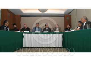 MÉXICO D.F. 04ABRIL2007.- Enrique Rivera Mayor del Ejercito de Salvacion, Antanasio Yañes representante de la iglesia Ortodoxa Griega, Marcelino Hernandez Arzobispo de la Iglesia Catolica, Arturo Farela presidente de la COFRATERNICE, y Armando Martinez representante del colegio de abogados catolicos, en conferencia de prensa donde declararon su negatividad ante el aborto. FOTO: SAÚL LÓPEZ/CUARTOSCURO.COM