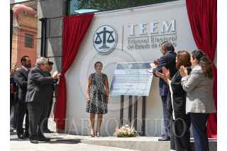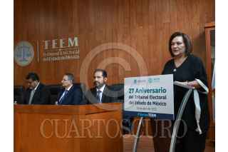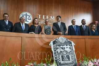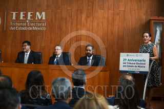 TOLUCA, ESTADO DE MÉXICO, 10ABRIL2023.- Leticia Victoria Tavira Magistrada Presidenta del TEEM encabezó la ceremonia del 27 Aniversario del Tribunal Electoral del Estado de México así como la inauguración de sus nuevas instalaciones, acompañada por Reyes Rodríguez Mondragón presidente del Tribunal Electoral del Poder Judicial de la Federación (TEPJF), Guadalupe Taddei Zavala Consejera Presidenta del INE, Amalia Pulido Gómez Consejera Presidenta del IEEM, Ricardo Sodi Cuellar Presidente del Tribunal Superior de Justicia del Estado de México. FOTO: CRISANTA ESPINOSA AGUILAR /CUARTOSCURO.COM
