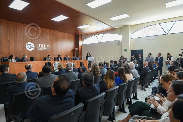 TOLUCA, ESTADO DE MÉXICO, 10ABRIL2023.- Leticia Victoria Tavira Magistrada Presidenta del TEEM encabezó la ceremonia del 27 Aniversario del Tribunal Electoral del Estado de México así como la inauguración de sus nuevas instalaciones, acompañada por Reyes Rodríguez Mondragón presidente del Tribunal Electoral del Poder Judicial de la Federación (TEPJF), Guadalupe Taddei Zavala Consejera Presidenta del INE, Amalia Pulido Gómez Consejera Presidenta del IEEM, Ricardo Sodi Cuellar Presidente del Tribunal Superior de Justicia del Estado de México. FOTO: CRISANTA ESPINOSA AGUILAR /CUARTOSCURO.COM