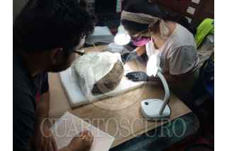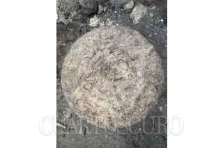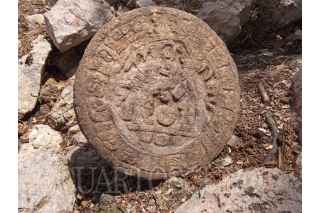CHICHÉN ITZÁ, YUCATÁN, 10ABRIL2023.- En la Zona Arqueológica de Chichén Itzá, arqueólogos del Instituto Nacional de Antropología e Historia (INAH) descubrieron un marcador de piedra de Juego de Pelota en forma circular, el cual presenta en bajorrelieve una banda glífica rodeando a dos personajes ataviados como jugadores de pelota. La relevancia del hallazgo radica en tratarse de un elemento escultórico que conserva su texto glífico completo. Con 32.5 centímetros de diámetro, 9.5 centímetros de grosor y 40 kilogramos de peso, la pieza fue hallada durante los trabajos arqueológicos que se efectúan como parte del Programa de Mejoramiento de Zonas Arqueológicas (Promeza), a cargo de la Secretaría de Cultura federal. La pieza, nombrada como Disco de los Jugadores de Pelota, fue encontrada por la arqueóloga Lizbeth Beatriz Mendicuti Pérez, dentro del conjunto arquitectónico Casa Colorada (nombrado así por los restos de pintura roja en su interior) o Chichanchob ─ubicado entre el Osario y el Observatorio─, como parte de la Estructura 3C27, la cual corresponde a un arco de acceso al área, informó el arqueólogo Francisco Pérez Ruiz, quien junto con el arqueólogo José Osorio León coordina la ejecución del Promeza en Chichén Itzá. FOTO: INAH/CUARTOSCURO.COM