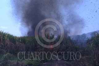 TLALTIZAPÁN, MORELOS, 10ABRIL2023.- La quema de cañaverales sin programación es común en Morelos. En la imagen la quema de un cañal que realizo una mano anónima en la zona del manantial de las Estacas. FOTO: MARGARITO PÉREZ RETANA / CUARTOSCURO.COM