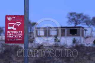 AYALA, MORELOS, 10ABRIL2023.- Anuncio del programa "Internet para todos gratuito" de la Comisión Federal de Electricidad colocando en una calle de la comunidad de Chinameca. La CFE pretende que para el final del sexenio tendrá una cobertura suficiente para abastecer de internet a 118 millones de mexicanos. Se proyecta instalar 12601 torres de comunicaciones para conectar a comunidades sin acceso a una red de internet. Imagen tomada el día de ayer en una calle de Chinameca, al sur de Morelos. FOTO: MARGARITO PÉREZ RETANA / CUARTOSCURO.COM