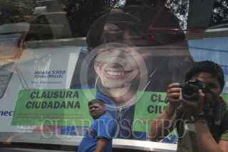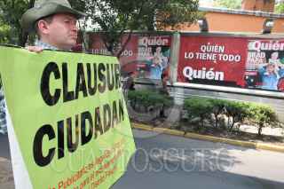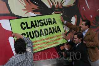 MÉXICO, D.F., 04ABRIL2007.- Los diputados Ricardo García Hernández, Alejandro Ramírez y Joge Carlos Diaz Cuervo se manifestaron clausurando anuncios publicitarios en vallas de Tintoreto y Patriotismo, reclamaron la contaminación visual que se ha desatado a lo largo de estos meses e insistieron en que se le de a esto una solución ya que las vallas publicitarias son ilegales. FOTO: EZEQUIEL TLAXCALA/ CUARTOSCURO.COM