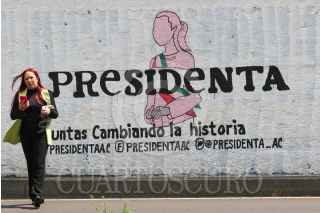 CIUDAD DE MÉXICO, 11ABRIL2023.- Una pinta con la silueta de Claudia Sheinbaum y la palabra Presidenta se observa sobre Ejercito Nacional. FOTO: MOISÉS PABLO/CUARTOSCURO.COM