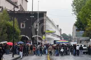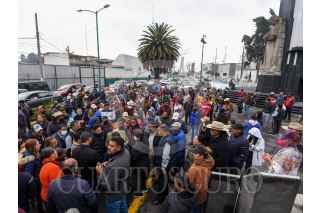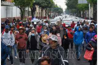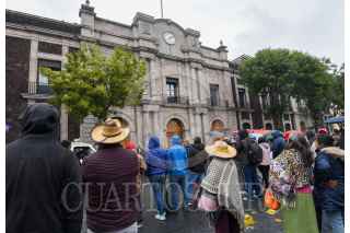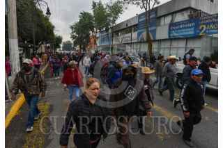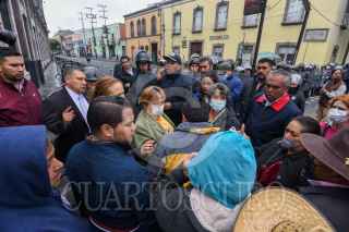 TOLUCA, ESTADO DE MÉXICO, 11ABRIL2023.- Ejidatarios de San Pedro Tultepec del municipio de Lerma marcharon por las calles de Toluca arribando al Tribunal Superior de Justicia del Estado de México exigiendo la libertad de su compañero Armando Lechuga detenido desde noviembre del 2022 por despojo de terrenos, una mesa de diálogo entró al TSJEM para sostener una reunión. FOTO: CRISANTA ESPINOSA AGUILAR /CUARTOSCURO.COM