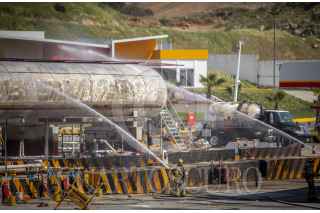 TIJUANA BAJA CALIFORNIA, 11ABRILMARZO2023.- Una explosión en la gasera Zilsa, ubicada sobre la carretera libre a Tecate-Tijuana dejó el saldo de 4 mujeres sin vida y tres personas más con heridas de gravedad. Al menos 6 estaciones del Cuerpo de Bomberos fueron las que trabajaron en el siniestro, que si bien fue controlado el fuego, la fuga de gas continúa activa. Elementos de la Policía Municipal y Guardia Nacional, Ejército Mexicano, se encuentran resguardando el lugar. El director de Protección Civil, Bernardo Villegas, declaró que el establecimiento será clausurado para realizar la investigación correspondiente que indique el origen de la explosión. FOTO: OMAR MARTÍNEZ/ CUARTOSCURO.COM
