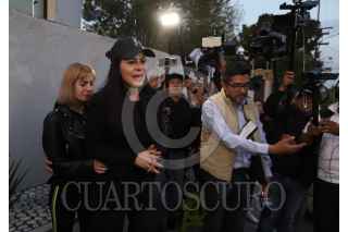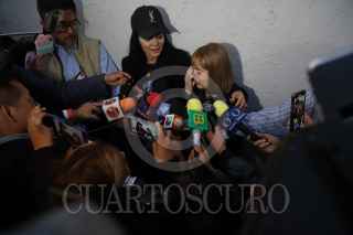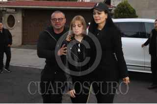 CIUDAD DE MÉXICO, 11ABRIL2023. Maribel Guardia acompañada de su esposo Marco Chacón e Imelda Garza salieron a dirigir un mensaje a los medios de comunicación que se encontraban haciendo guardia en las inmediaciones de su domicilio; después del fallecimiento de su hijo Julián Figueroa. FOTO: EDGAR NEGRETE/CUARTOSCURO.COM