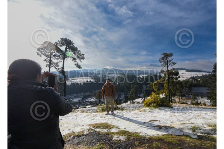 ZINACANTEPEC, ESTADO DE MÉXICO2023.- En las faldas del Volcán Xinantécatl se pudo disfrutar de un paisaje nevado después de la lluvia con granizo que se registró durante la tarde noche del martes en el Valle de Toluca. FOTO: CRISANTA ESPINOSA AGUILAR /CUARTOSCURO.COM