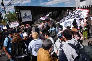 CIUDAD DE MÉXICO, 12ABRIL2023.- Integrantes del Sindicato Nacional de Trabajadores de la Secretaría de Medio Ambiente y Recursos Naturales (Semarnat) realizaron un bloqueo parcial frente a las oficinas de la Comisión Nacional del Agua, los inconformes exigen una basificación a personal e insumos para realizar su trabajo. FOTO: ROGELIO MORALES /CUARTOSCURO.COM