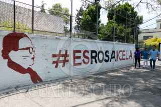 CIUDAD DE MÉXICO, 13ABRIL2023.- Una barda con la leyenda #EsRosaIcela se observa en las cercanías de la estación General Anaya en la alcaldía Coyoacán. FOTO: GALO CAÑAS/CUARTOSCURO.COM