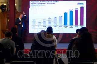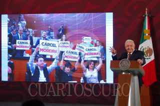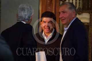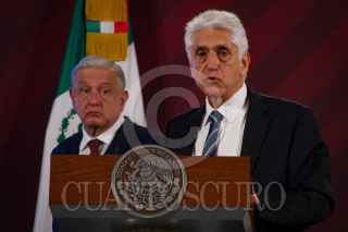 CIUDAD DE MÉXICO, 14ABRIL2023.- Andrés Manuel López Obrador, presidente de México, y Germán Arturo Martínez, director de la Comisión Nacional del Agua. durante la conferencia matutina desde el Salón Tesorería de Palacio Nacional. FOTO: ROGELIO MORALES /CUARTOSCURO.COM