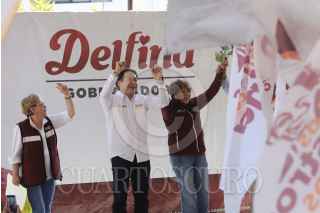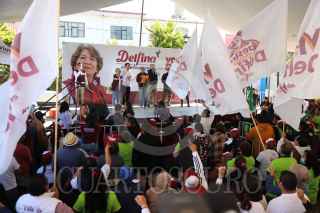 COCOTITLÁN, ESTADO DE MÉXICO, 14ABRIL2023.- Delfina Gómez, candidata de Morena a la Gobernatura del Estado de México acudió al municipio de Cocotitlán en acto de campaña rumbo al 4 de junio. FOTO: EDGAR NEGRETE LIRA/CUARTOSCURO.COM