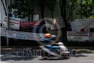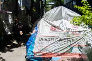 CIUDAD DE MÉXICO, 14ABRIL2023.- Campamento del Sindicato Único de Trabajadores (SUT) de la Agencia de Noticias del Estado Mexicano (NOTIMEX) al exterior de las instalaciones de la agencia la cual de acuerdo al Senado de la República y el Gobierno Federal desaparecerá y será liquidada conforme a la ley. FOTO: MARIO JASSO/CUARTOSCURO.COM