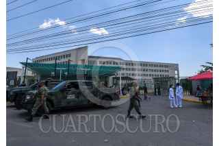 TOLUCA, ESTADO DE MÉXICO, 14ABRIL2023.- Despliegan dispositivo de seguridad en el Hospital “Lic. Adolfo López Mateos” en la ciudad de Toluca, a donde presuntamente fue trasladado Teodoro García Simental alias “El Teo” o “El tres Letras” líder del Cartel de Tijuana del Centro Federal de Readaptación Social número 1 “El Altiplano”, elementos del Ejército Mexicano resguardan las inmediaciones. FOTO: CRISANTA ESPINOSA AGUILAR /CUARTOSCURO.COM