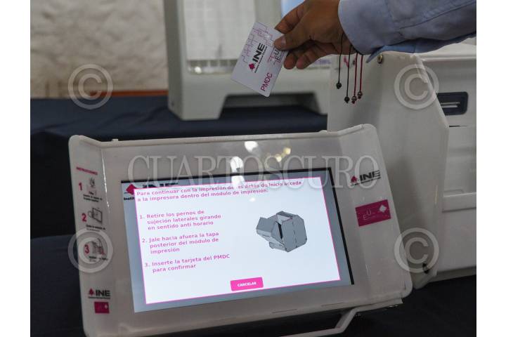 TOLUCA, ESTADO DE MÉXICO, 14ABRIL2023.- Ante los consejeros del INE Norma Irene de la Cruz Magaña, Martín Faz Mora, Dania Paola Ravel Cuevas, la Consejera Presidenta del IEEM, Amalia Pulido Gómez, fue presentada la urna electrónica, modelos INE y Jalisco, que se utilizarán para la jornada electoral del próximo 4 de junio en el Estado de México, y serán utilizadas 164 urnas electrónicas en 19 municipios. FOTO: CRISANTA ESPINOSA AGUILAR /CUARTOSCURO.COM