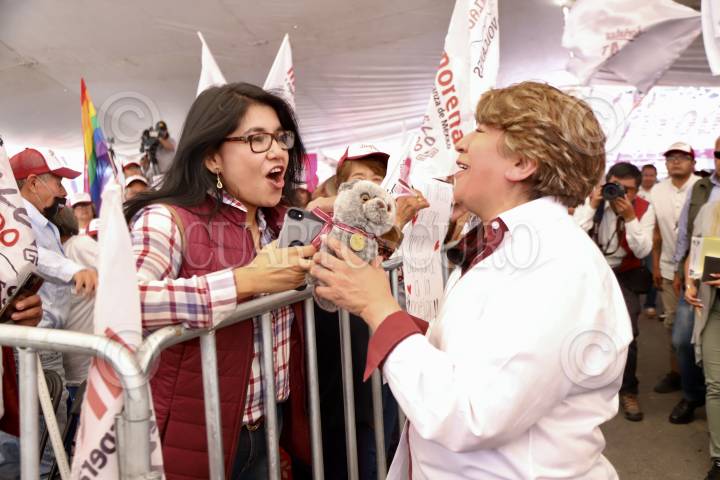 AMECAMECA, ESTADO DE MÉXICO, 15ABRIL2023.- Delfina Gómez, candidata de Morena a la Gobernatura del Estado de México acudió al municipio de Amecameca en acto de campaña rumbo al 4 de junio. FOTO: EDGAR NEGRETE LIRA/CUARTOSCURO.COM