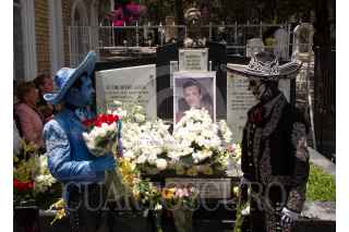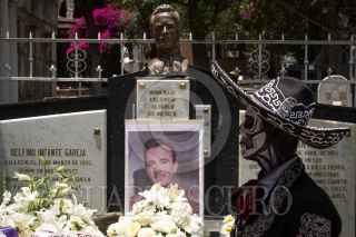 CIUDAD DE MÉXICO, 15ABRIL2023.- Admiradores de Pedro Infante se dieron cita en el Panteón Jardín, para recordar y rendir homenaje por el 66 aniversario luctuoso del Ídolo de Guamúchil. FOTO: ROGELIO MORALES /CUARTOSCURO.COM